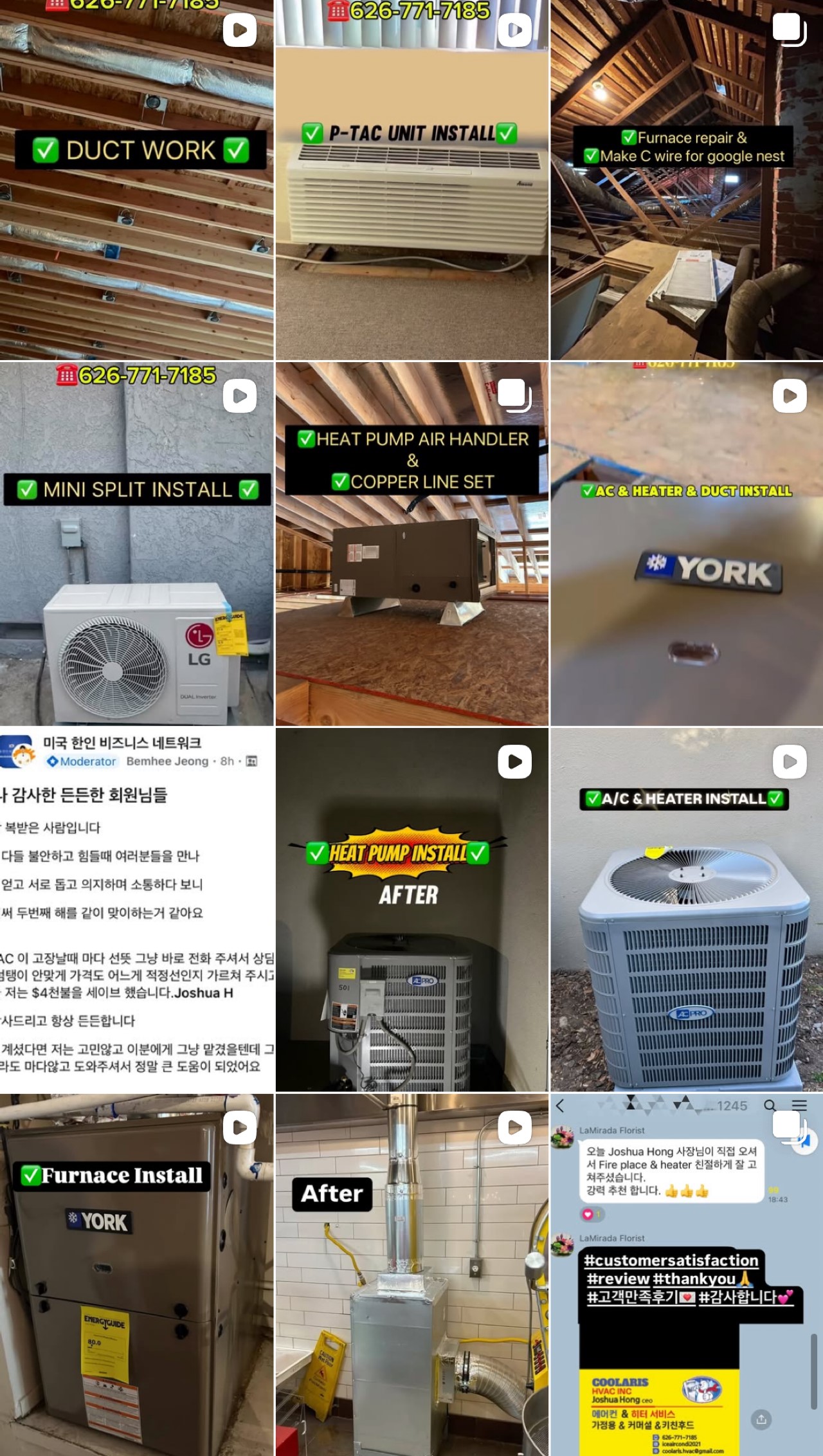 https://www.instagram.com/coolaris.hvac (더 많은 실제 작업 사진과 영상, 고객님들 만족 리뷰를 확인 하실 수 있습니다.)