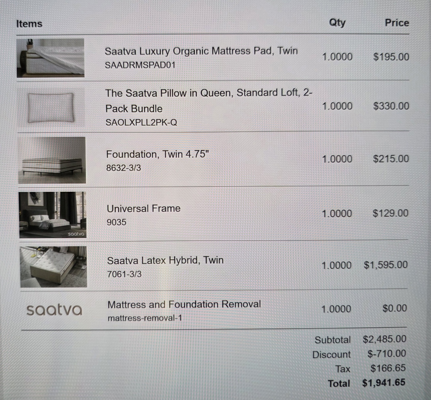 Saatva Latex Hybrid 매트리스 (mattress + Frame + Foundation, twin size) 판매합니다. ($1,939 => $500)